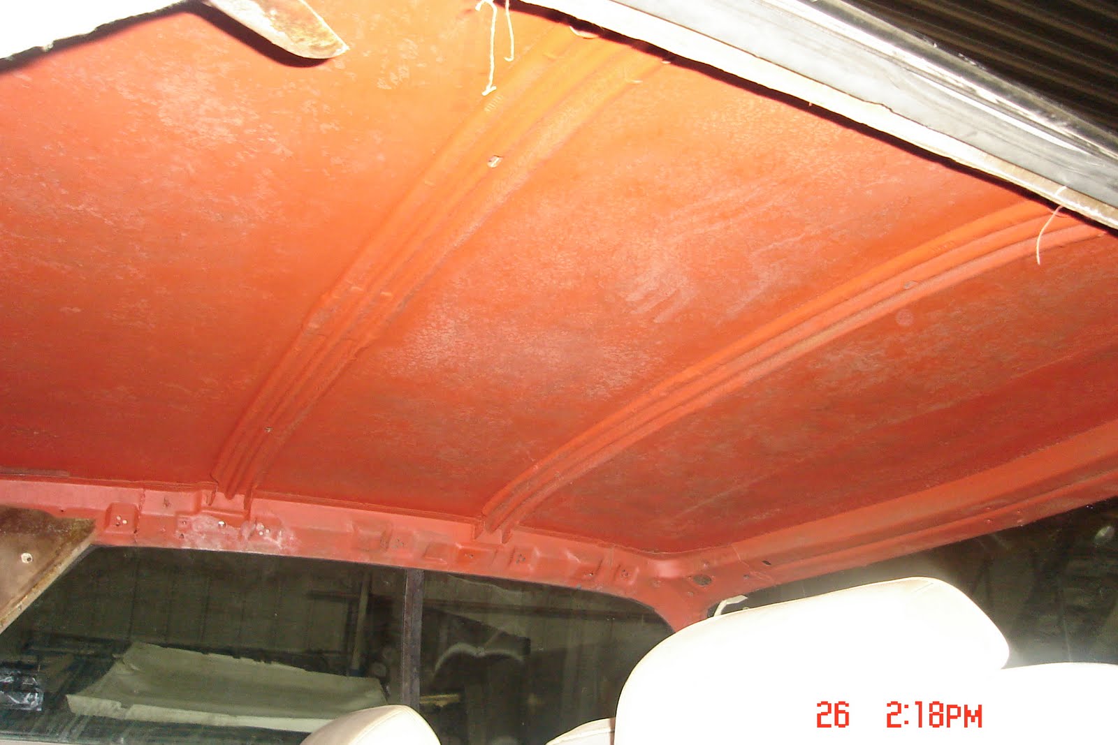 Vinüüli asemel saab katusele hoopis kivikaitse. Pidavat reljeefne jääma ja imiteerima vinüüli. Põhjus ilmselge: kuna ka ülejäänud kere vajaks pleki- ja värvimistöid, siis ei ole mõtet elu keerulisemaks teha ja panna kunagi plekkseppa/maalrit muretsema, kuidas ta vinüüli servade alla pääseks. Õigem järjekord oleks ikka eelkõige kere ja siis vinüül katusele, aga kuna sel suvel tahaks juba sõita, siis läheb kasutusele kiirem variant. Hiljem saab katuse siledaks lihvida, liim peale ja vinüül takkajärgi. Tundub mõistlik.