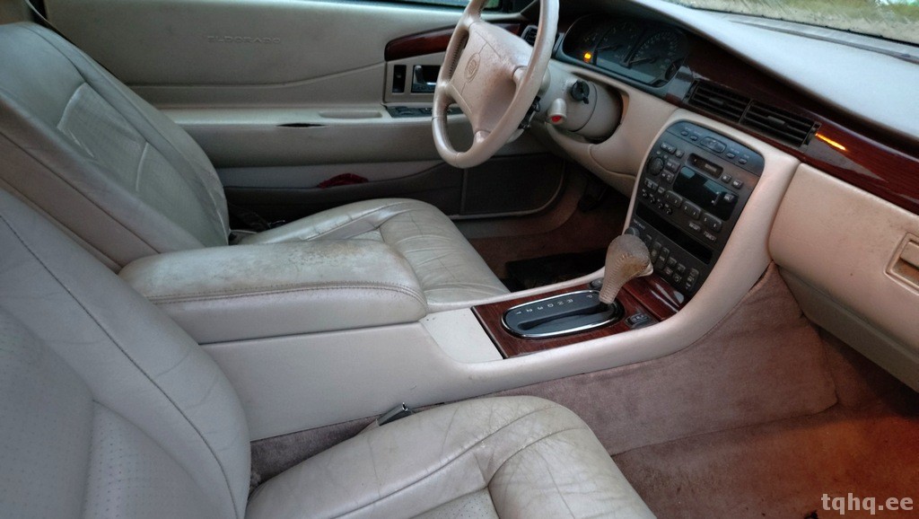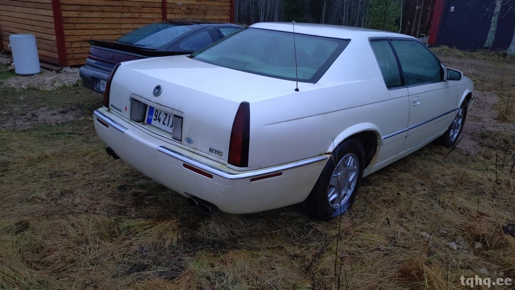 ´96 Eldorado ETC. Seisnud pea aasta, vahel olen ikka väiksemaid kodulähedasi ringe teinud. Vigadest: üks tagaamort (Arnott) täitsa läbi, taha jooksev piduritoru katki, kliima suht tühi (suvel mingi 5 minuti pärast teatas et freooni vähe, kompressor off), roostet tiivaäärtes, uksel, luugil. Sisu tahab kindlasti kasimist, on must, ei hallita. Aku ka ilmselt suht läbi. Projekt talvel nokkimiseks ühesõnaga.