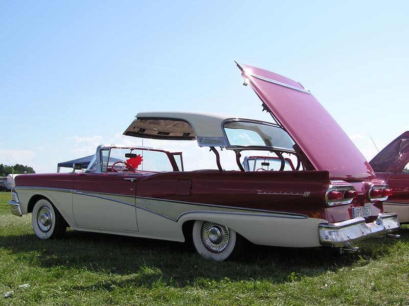 | Allakäiv kõvakatus pole hiljutine Mercedese leiutis, kui mõni ehk nii arvab. Ford pakkus sellist Skyliner Retractable Hardtop mudelit aastatel '57-'59, pildil on '58 mudel. Kuigi Ford oli esimene, kes sellist autot masstootis, oli sarnane lahendus mõnedel Peugeot'del kasutusel juba enne Teist Maailmasõda. Auto suurusest tingituna oli Fordi inseneride ülesanne aga keerukam - nagu näha, tuli näiteks katuse esiserv eraldi alla voltida. |